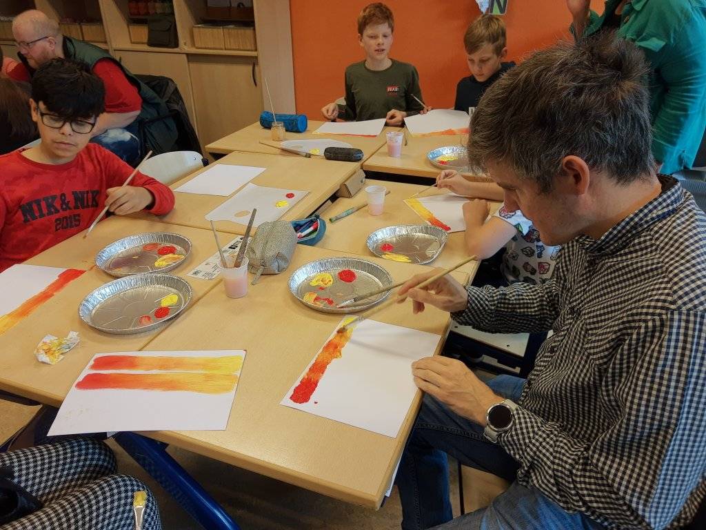 Olv Jose heeft iedereen vanochtend kennis kunnen maken met wat kleuren doen door ze te mengen en het leren hoe je een verhaal kunt omzetten in beelden. In dit geval ging het over een hond, kat, muis en een ring .. het resultaat mag er zijn. Dankjewel aan iedereen die hieraan bijdragen heeft.