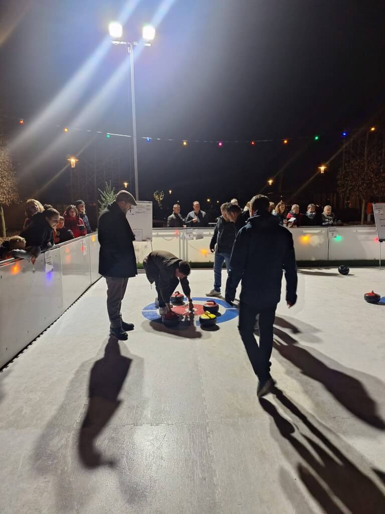 Nadat de kinderen van de Kreek’l de schaatsbaan uitgebreid hadden getest was het tijd voor het Eerste Reekse Curling Toernooi.