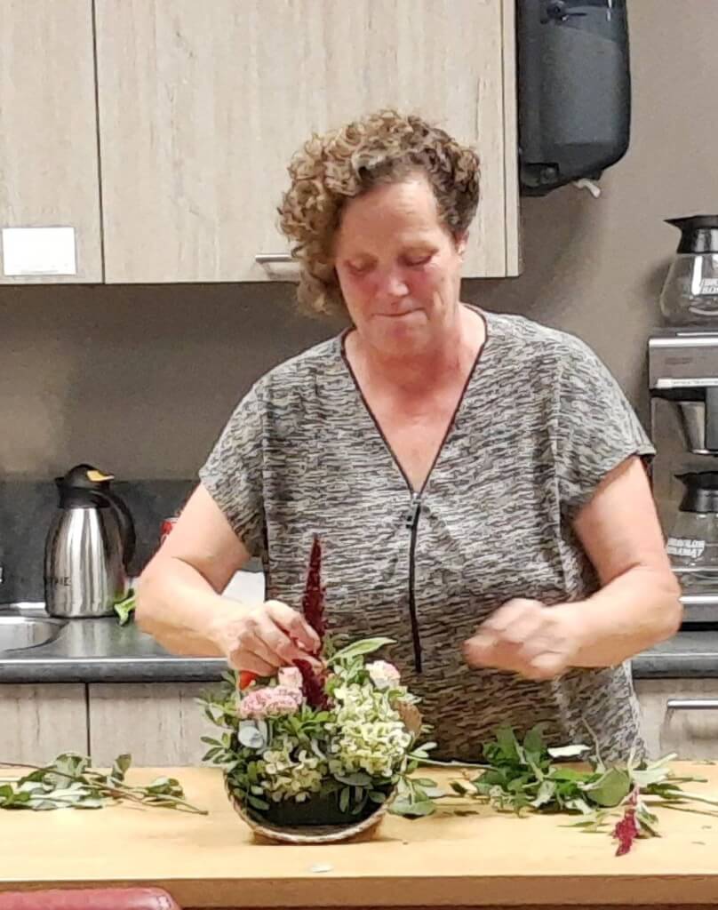 Met dank aan Els ging iedereen naar huis met een prachtig bloemstuk !