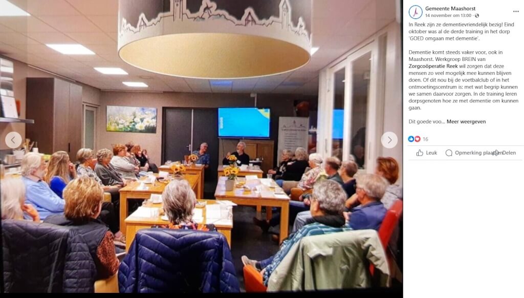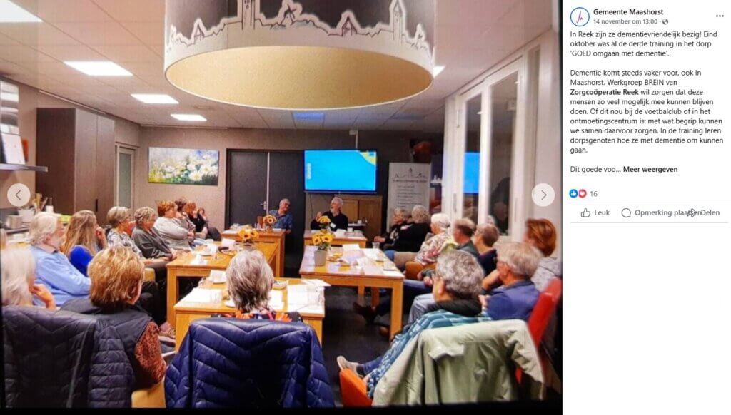 In Reek zijn ze dementievriendelijk bezig! Eind oktober was al de derde training in het dorp ‘GOED omgaan met dementie’.