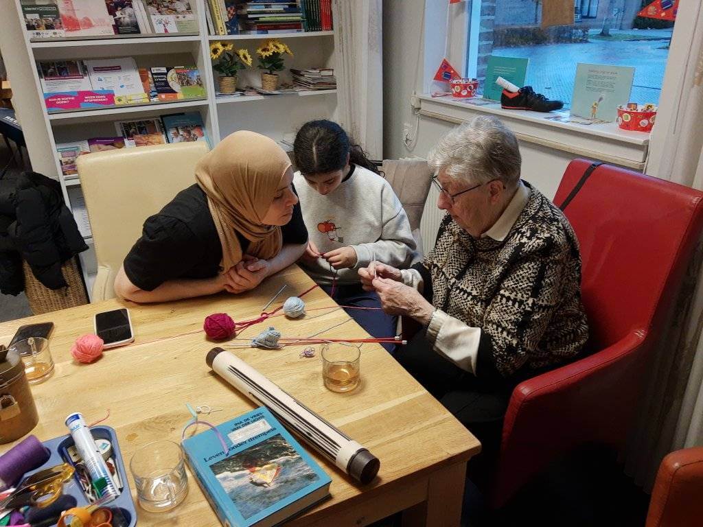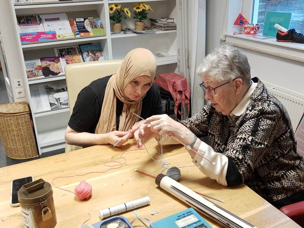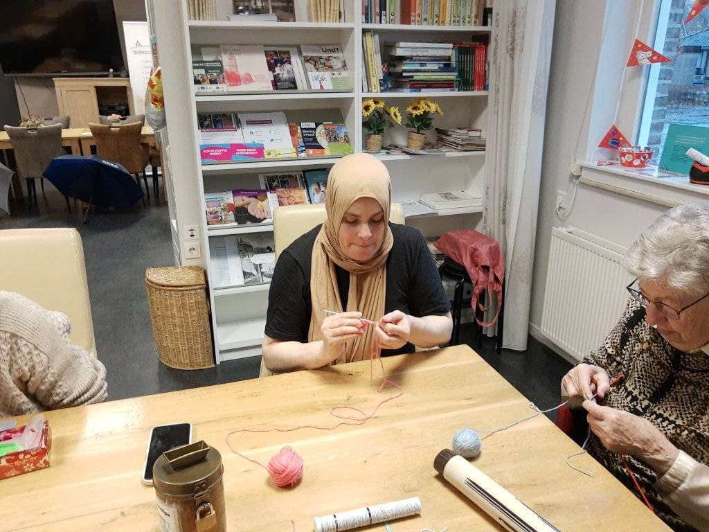 Dat kan bij de zonnebloem, elke dinsdagmiddag van 14 tot 16 uur in de Babbelaer. Hannah met haar dochter wilden heel graag leren breien en haken, dus waar kun je dan het beste naar toegaan? Precies, naar de dames van de zonnebloem.